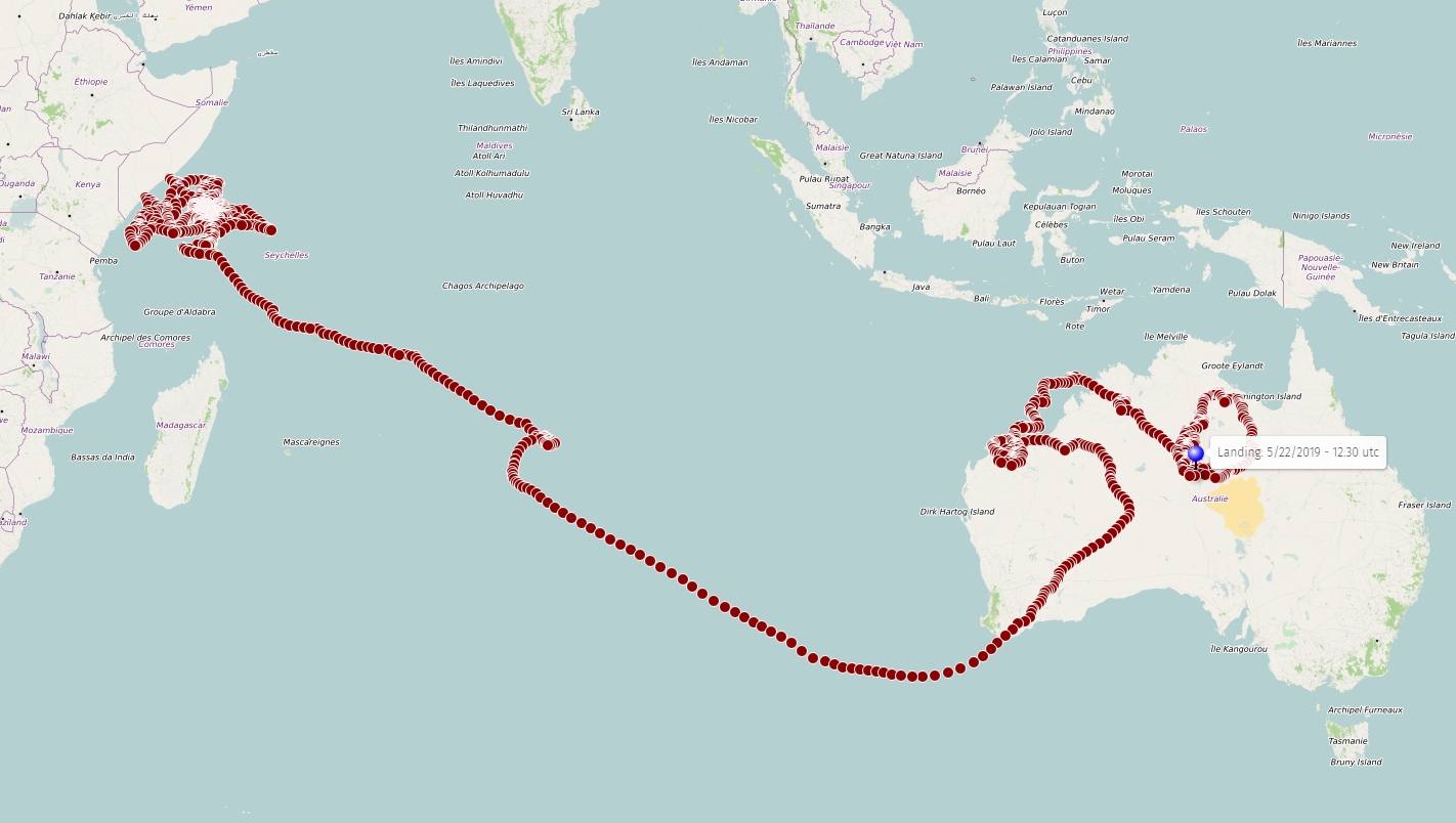 End of flight (L for landing time, W for last contact, otherwise termination time): 5/22/2019