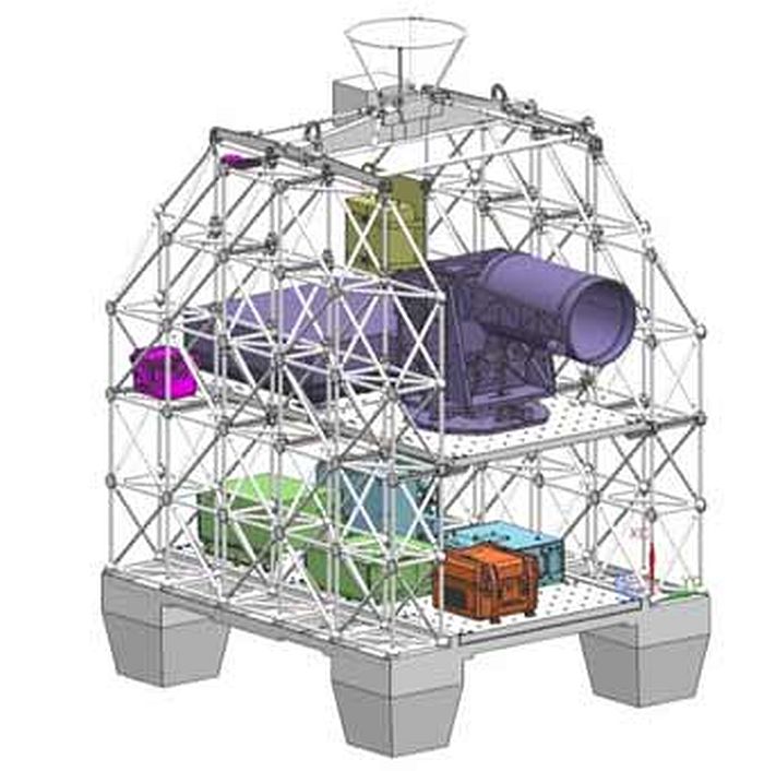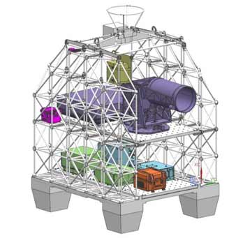 The design of the outer structure is based on the previous experience of the CNES using similar configurations of strong tubes or bars and balls as anchor point. The overall empty weight of the platform structure is near 275 kg and the space to accomodate the payloads is composed of 4 removable trays, which can support a weight of 100 kg, while the mass occupied by a single payload is of up to 400 kg. In addition, the cells that form the exterior walls of the gondola can also accommodate a total of 400 kg of scientific instruments or services gondolas (telemetry, telecommand and so on).