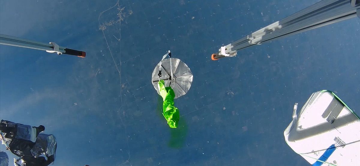 The flight test aimed to determine how the device might transition from de-orbit to subsonic mode. For this balloon flight, the forebody of the device was a Tube Deployed Reentry Vehicle (TDRV) also developed at AMES.