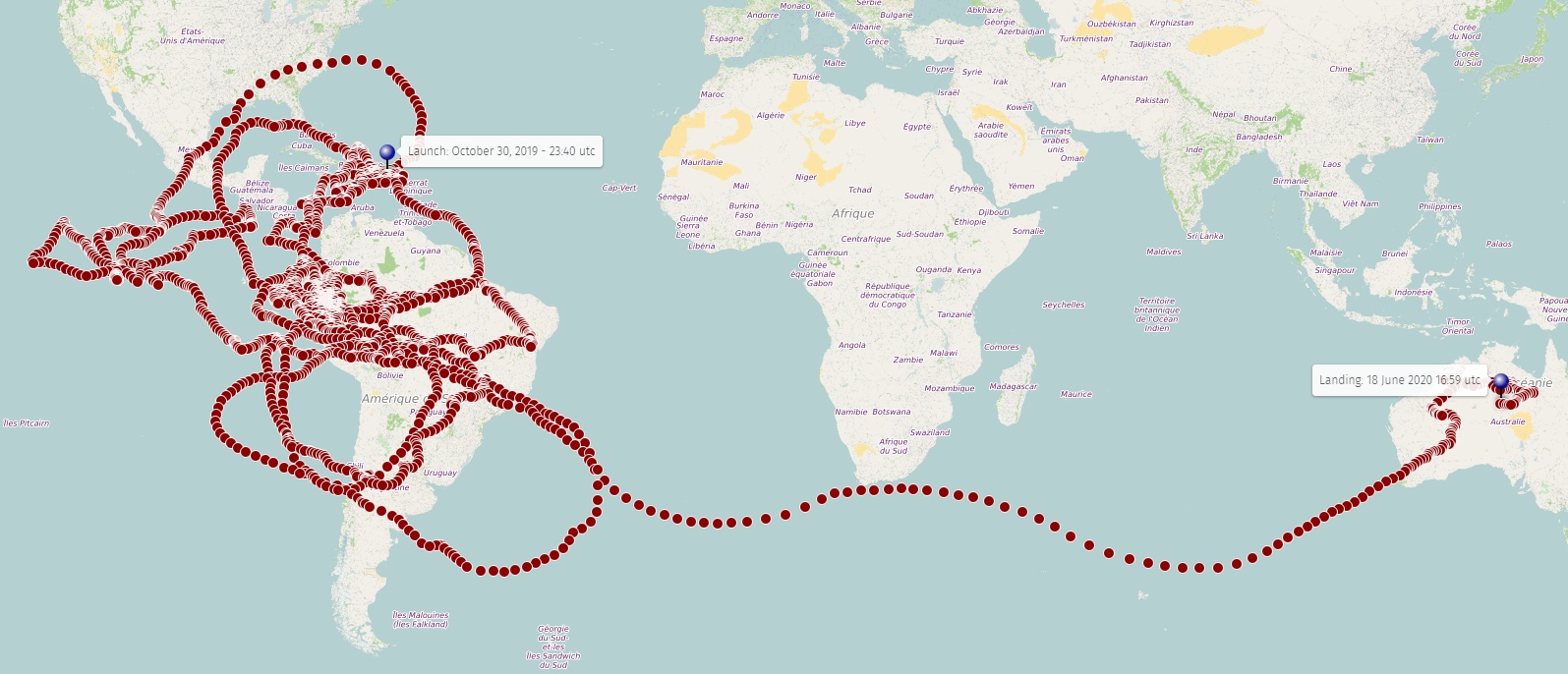 End of flight (L for landing time, W for last contact, otherwise termination time): 6/18/2020 at (L) 17:00 utc