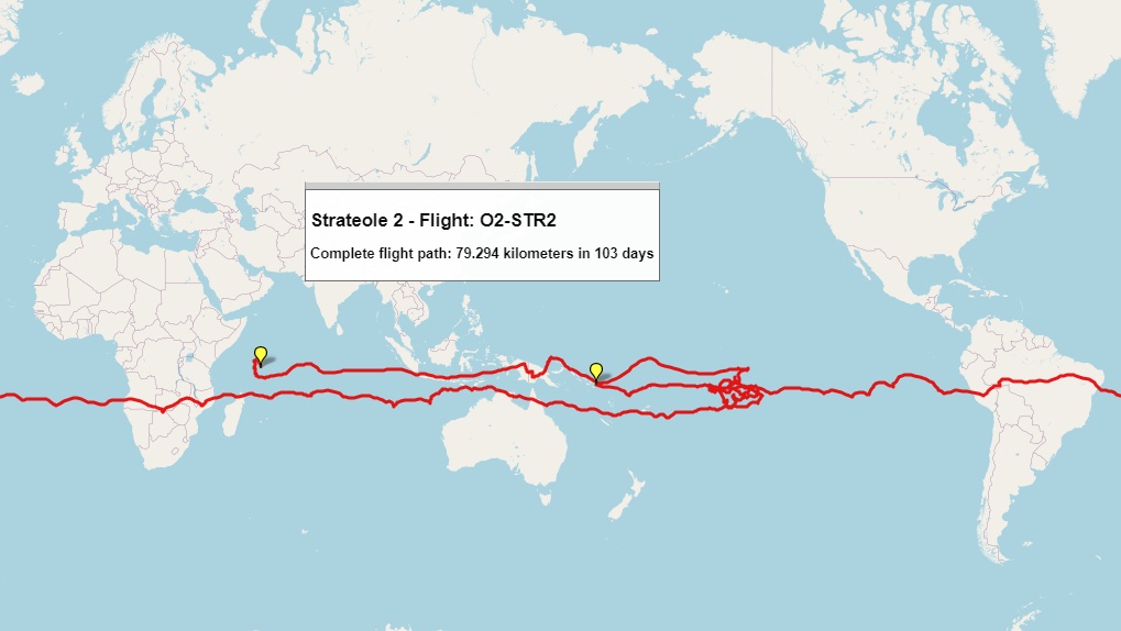 Strateole-2 is a French-US project to study climate processes in the Tropical Tropopause Layer (TTL) and in the lower stratosphere. The project is based in the use of CNES superpressure balloons, capable of drifting for several months between 18 and 20 km altitude. The effort will release a total of nearly 50 long-duration balloons in three separate campaigns between 2019 and 2024. During each Strateole-2 campaign two series of balloons were flown at different altitudes: one above the tropopause -the boundary between the troposphere and the stratosphere- nomenclated as STRAT at about 20,000 metres and the other at around 18,000 metres, at the top of the tropopause nomenclated as TTL. The first series of flights focuses primarily on remote measurements, and the second on in-situ measurements.