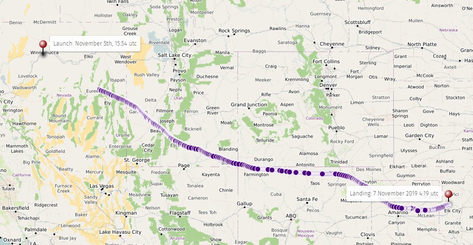 Balloon launched on: 11/5/2019 at 18:33 utc