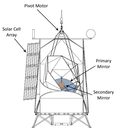 BLAST-TNG uses an on-axis Cassegrain telescope, with a 2.5 m-diameter primary mirror, and a 57 cm-diameter secondary mirror. The primary is meant to be the largest mirror ever flown on a balloon, and the largest submillimeter carbon fiber mirror in operation. The telescope will have a resolution range of 25" to 50" with a ~22' diameter field of view. The Cassegrain telescope focuses the beam into a cryogenic receiver, where a series of mirrors re-image the beam onto the three detector arrays. These "cold optics" are cryogenically-cooled to 4 degrees Kelvin. Polarization modulation is provided by a wide-band metal-mesh half wave plate, which is stepped periodically during observations to allow for the removal of systematic polarization errors.