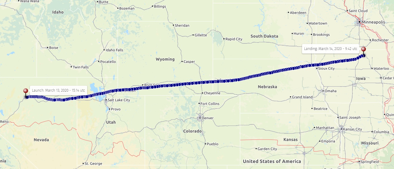 Balloon launched on: 3/13/2020 at 15:14 utc