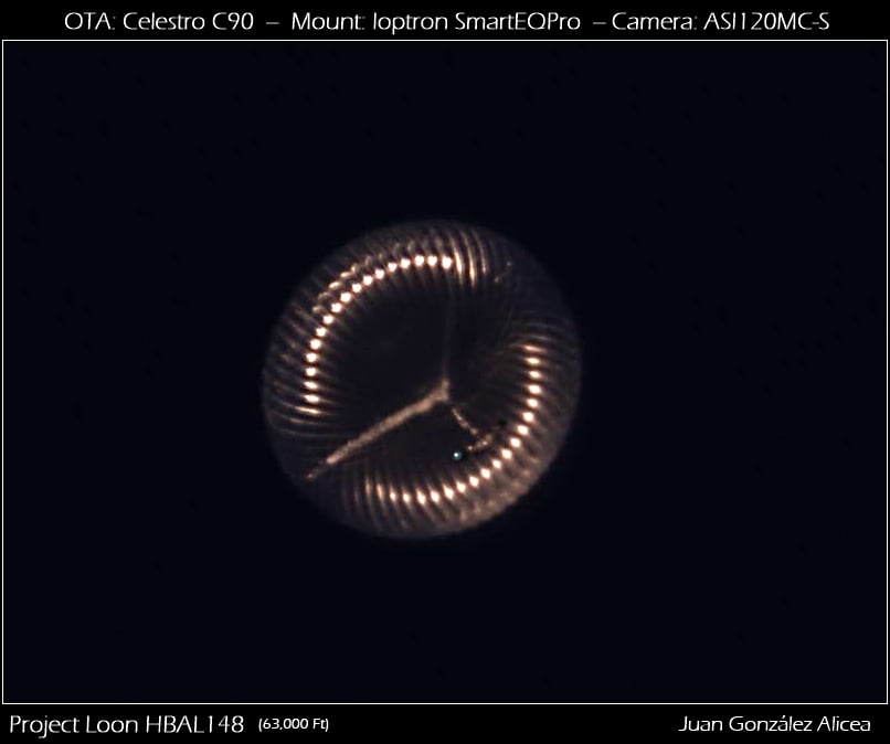 All these elements were mounted on a tubular aluminum and styrofoam structure. Attached solar panels powered the entire system during the day, while charging lithium batteries that powered the systems at night. The entire structure was attached to the balloon by means of a rigid aluminum pipe that ensured that both elements remained together during the descent. The total mass varied between 30 and 50 kg. Although the balloons flew well above commercial aviation, they had several safety measures to rule out any possibility of collision: the entire structure was covered by radar reflective material, in each corner of the solar panels there was an omnidirectional white strobe light with a range of 5 nautical miles that flashed once per second, and a transponder constantly transmitting the position and altitude of the balloon to air traffic control and other nearby aircraft.