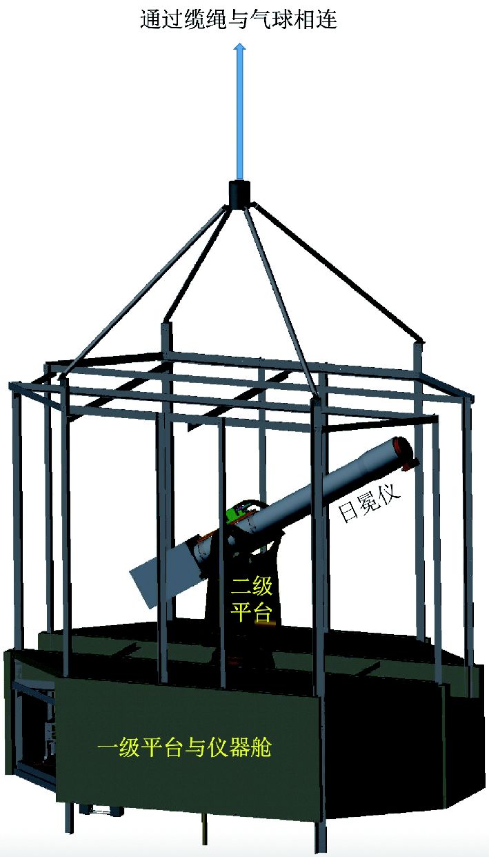 The instrument that we can see in a basic scheme in the figure at left (click to enlarge) consists of three parts: the primary platform and instrument cabin, the secondary platform, and the coronagraph. The primary platform carries the coronagraph and all loads related to the coronagraph observation, including the power supply, communication equipment, industrial computers, gyroscopes, solar sensors and secondary platform. The upper end of the first-level platform is connected to the balloon through cables and parachutes. After the observation is completed, the connection between the balloon and the parachute is cut off, and the entire system is brought back to the ground for a safe landing. The power supply provides energy for operating all equipment on the platform, the communication equipment allows command reception and data transmission from/to the ground, and the onboard industrial computer controls the operation of various equipments in the system. A gyroscope is responsible for maintaining the stability of the first-level platform in the horizontal direction, while an special system finds the sun.