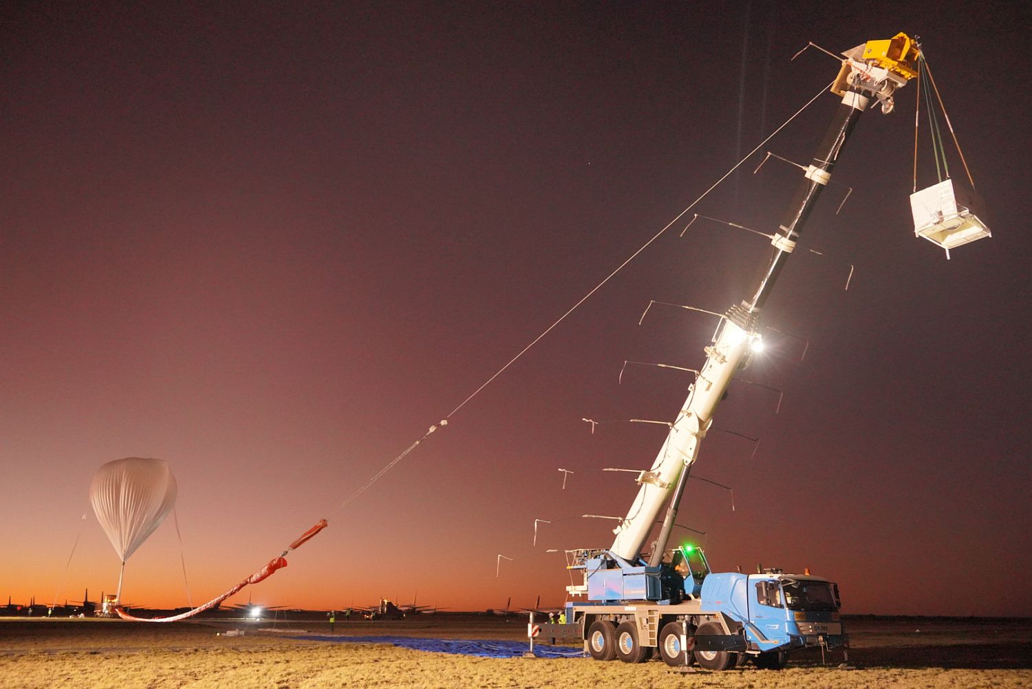 After completion of the test, the balloon continued in flight for more than 3 hours until at 5:05 UTC the rest of the on-board equipment was separated by radio command and descended about 500 km east of Alice Springs, in Queensland.