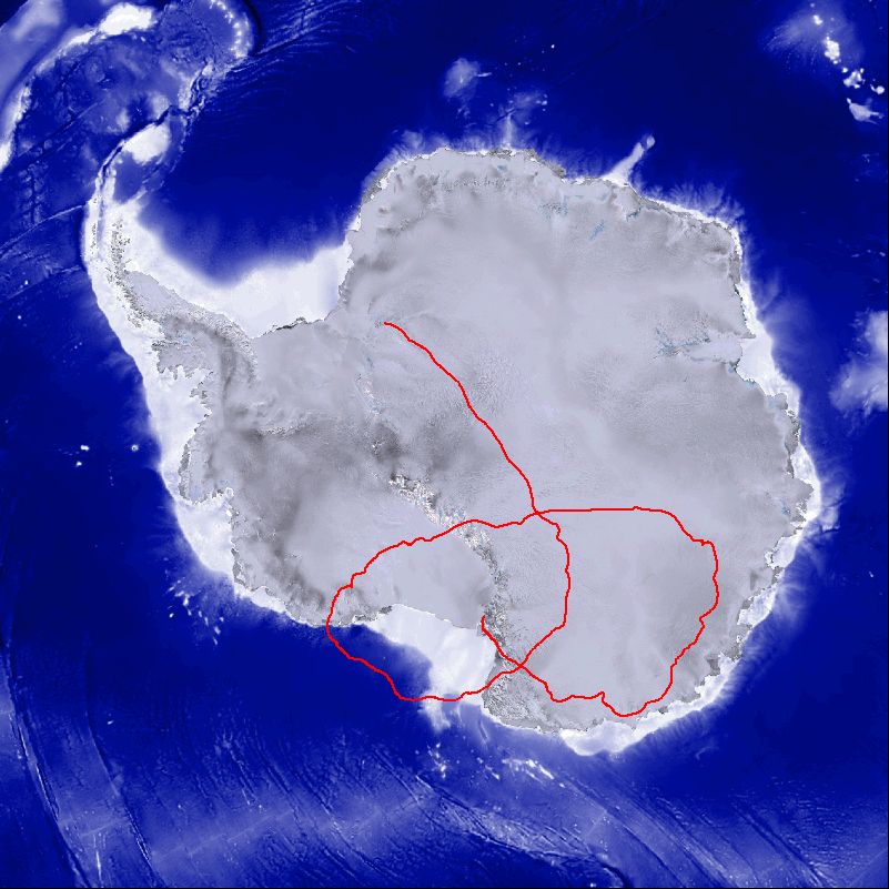 Landing site: In the Ronne Ice Shelf, 170 km S of Belgrano II base, Antarctica
