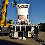 Early December the EUSO-Balloon (Extreme Universe Space Observatory) instrument, completed its compability and hang test at the Columbia Scientific Balloon Facility in Palestine, Texas. The instrument that will be launched in March from Wanaka, New Zealand in a long duration mission under a NASA Superpressure Balloon, was shiped from the Port of Houston to the Atlantic side of the Panama Canal, unloaded and moved by rail to the Pacific side and finally placed on another ship traveling to New Zealand. The journey was expected to take about two months.