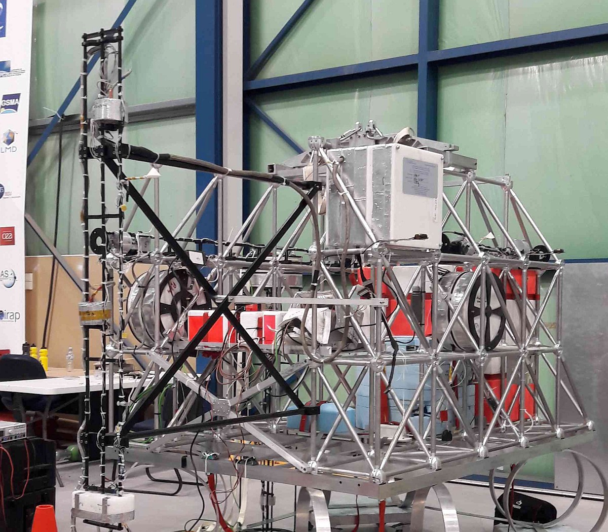 The gondola structure follow the standard conformation of steel bars and balls which CNES engineers mastered over the years, maximizing the space, functionality and versatility which can be adapted to the science needs in each flight. The total mass including instruments is about 240 kgs.