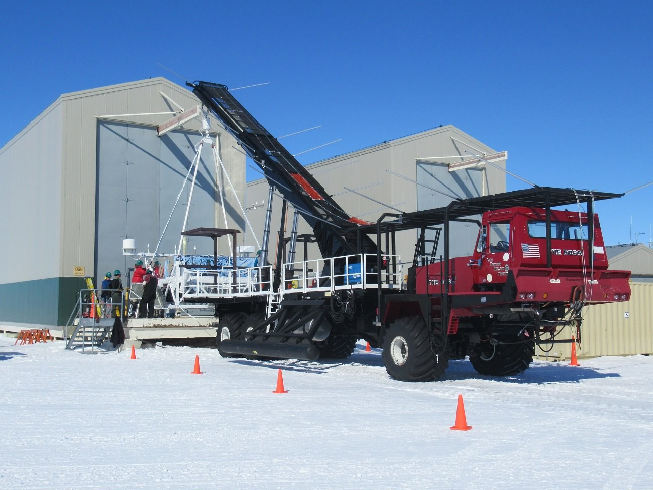 Two days later, the first launch opportunity appeared but after being picked up by "The Boss" (the launch vehicle that you can see in the images at left, named after Antarctic explorer Ernest "The Boss" Shackleton) weather started to deteriorate and the attempt was cancelled.
