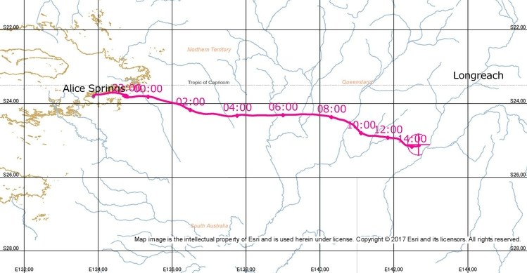 Unlike occurred with the first mission which caused quite a stir in the vicinity of the launch base, as the sky over Alice Springs on April 26 was overcast, the drifting of the balloon was unnoticed by most of the population. Once at float altitude the balloon followed an eastward flight path that took it to Queensland during the rest of the day. Once there, near midnight, was sent a command that separated the balloon from the payload. The instrument landed with no damage in a point located 10 kilometers north of the small town of Windorah, in Queensland. Below these lines we can see a map of the balloon displacement. Total flight time from launch to separation was of 16 hours and 44 minutes.