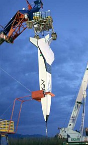 On this day in 2007 was performed over the aerial/marine test range of Salto di Quirra in Sardignia, in the Mediterranean sea a stratospheric drop test of the "FTB-1 Castore" model airplane. The craft was one of the two vehicles built under the PRORA-USV (Unmanned Space Vehicle) program which was conceived in 2000 under managment of the Italian Aerospace Research Center (CIRA). These vehicles were key pieces to test and verify advanced functionalities and critical operational aspects of a future Reusable Launch Vehicle (RLV) intended for orbital space missions.