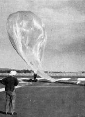 On this day in 1964 a 200 feet diameter balloon was launched by Air Force Cambridge Research Labatories personnel from Holloman AFB, New Mexico, transporting a special telescope to make spectroscopic records of the planet Venus. The Mission was the third one of Project BAL-AST (Balloon Astronomy) under guidance of Dr. John D. Strong of the John Hopkins University. The instrument was fully automated and consisted of a 41 cm Schmidt-mirror telescope coupled with an infrared spectrometer.