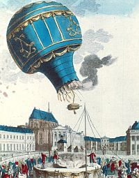 On this day in 1783, the Montgolfi&eagrave;res brothers balloon Aerostat Réveillon was flown in front of a crowd at Versailles, France before King Louis XVI and Queen Marie Antoinette.