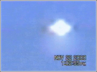 Segun informa el grupo chileno ODEFO las imagenes que aqui les presento corresponden a un supuesto OVNI visto en el norte de chile el día 22 de noviembre del 2000 en una zona situada entre los paralelos 21-22 1/2 y el meridiano 70 1/2. La observación se efectuó en alta mar, en la foto de la derecha (que es una captura del video tomado a bordo del barco) se aprecia un objeto esférico aparentemente de color plateado el cual se divisó desde las 11:00 hs hasta las 21:00 hs aproximadamente. Fueron testigos del avistamiento unas 20 personas.