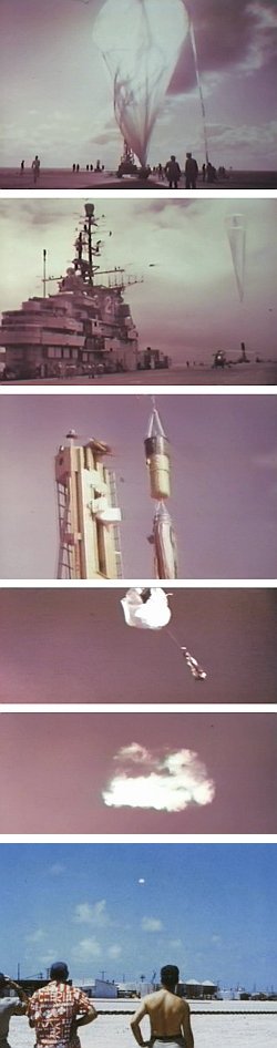 At 12:50 the balloon reached floating altitude of 85.500 ft and finally at 14:40 the nuclear device was detonated by radio command in a point located 85 miles NE of Eniwetak. The device produced a yield of 1.7 kilotons, a small amount for the standards of the times.