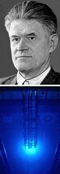 It is named after Pavel Alekseyevich Cherenkov (1904-1990), a Soviet physicist who shared the Nobel Prize in physics in 1958 with Ilya Frank and Igor Tamm for the discovery of such new effect. In 1934, while working under supervision of S.I. Vavilov, Cherenkov observed the emission of blue light from a bottle of water subjected to radioactive bombardment. This phenomenon, associated with charged atomic particles moving at velocities greater than the speed of light in the local medium, proved to be of great importance in subsequent experimental work in nuclear physics, and for the study of cosmic rays. He was the first to characterise it rigorously.