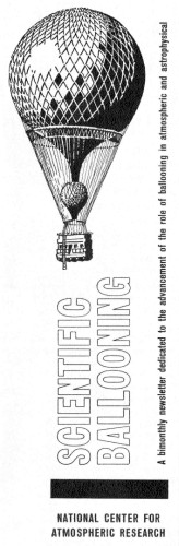 Scientific Ballooning was a bimonthly newsletter published by the National Center for Atmospheric Research, in the decade of 1960's dedicated to the advancement of the role of ballooning in atmospheric and astrophysical research. It was intended primarily to acquaint scientists who used balloons (or potential users of them) with their advantages and faults, their limitations and future capabilities. In the cover was an image of Le Geant a balloon built the Felix Nadar, Paris photographer, in 1863, that the editors choose as an indication that not all great ballooning achievements are exactly new.
