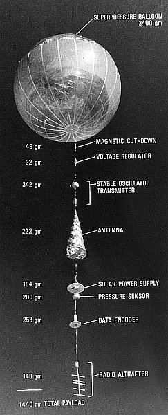 The TWERLE balloons were fitted with all the necessary electronics, solar-cell array, and antenna to transmit once each minute, 400 Mhz signals to the Nimbus-6 satellite which carried onboard an experiment designed to locate and collect data from a large number of drifting platforms, based on the Doppler signal transmited by the balloons. Hence, in the daylight portion of each orbit the spacecraft detected, demodulated, and stored these Doppler signals along with sensor telemetry for all balloons within range of the satellite and transmited back to Boulder, Colorado for storage and analysis at NCAR.